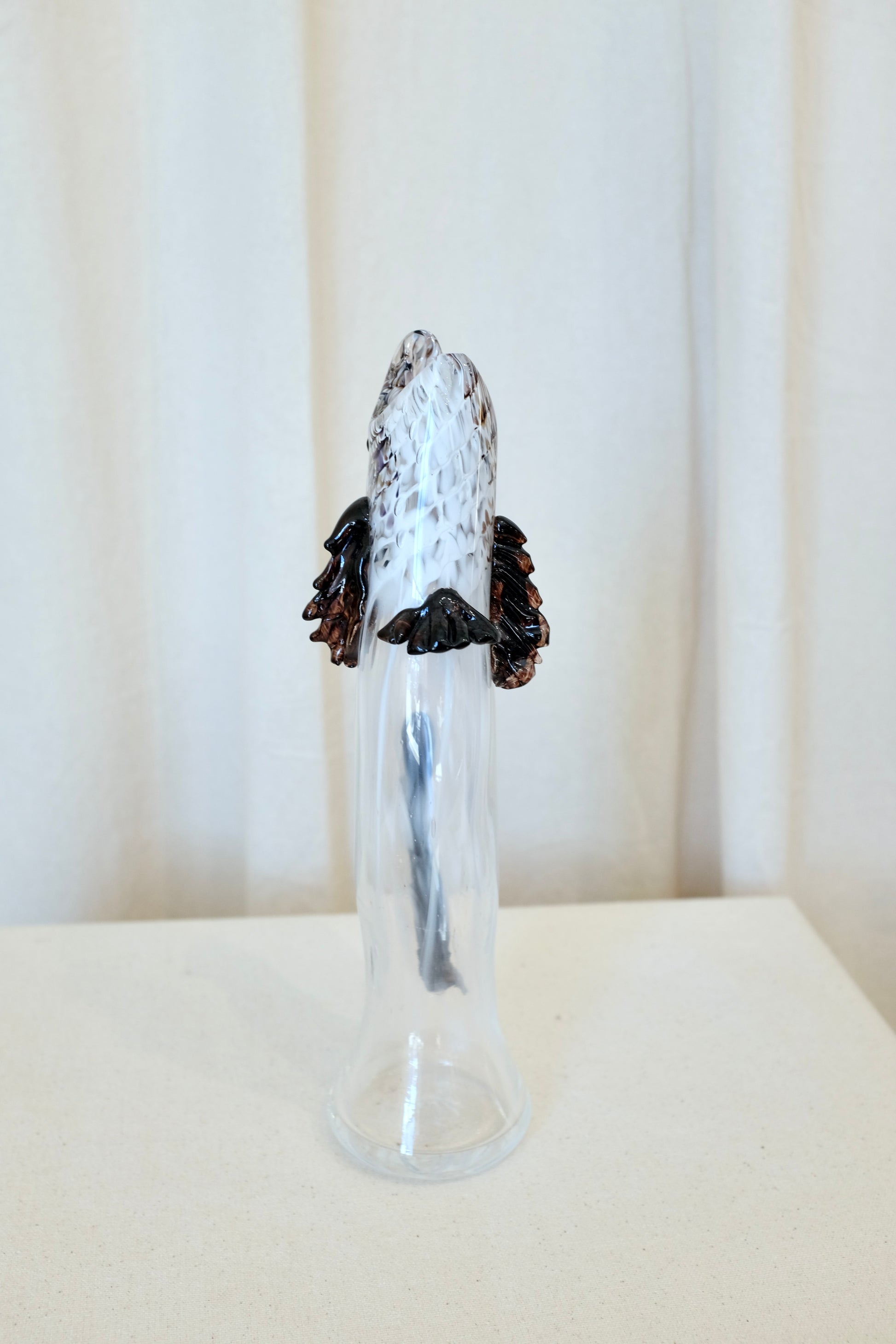 Art glass fish form vases by David Duthie, signed. Grayscale fish is 12"h. Amber fish is 9"h.