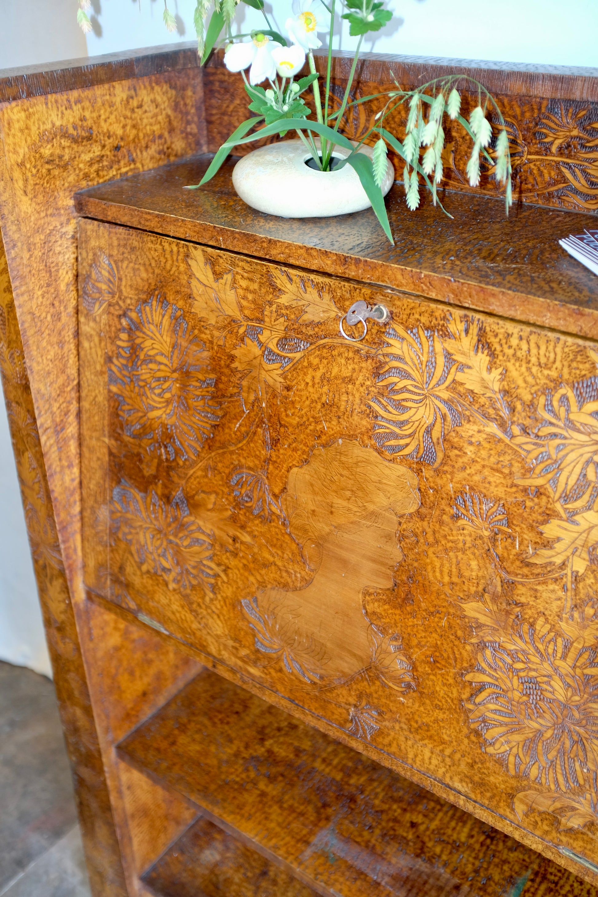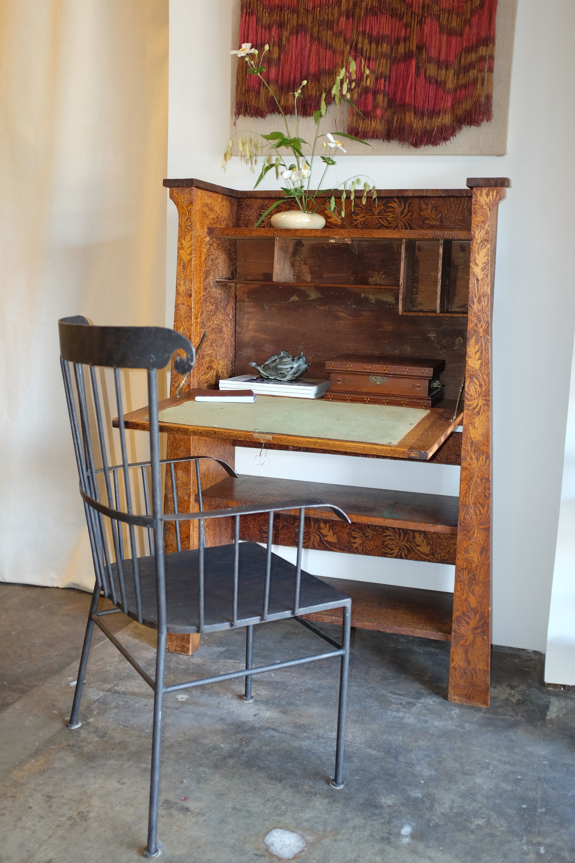 Pyrography Fall-front Desk, Early 1900s