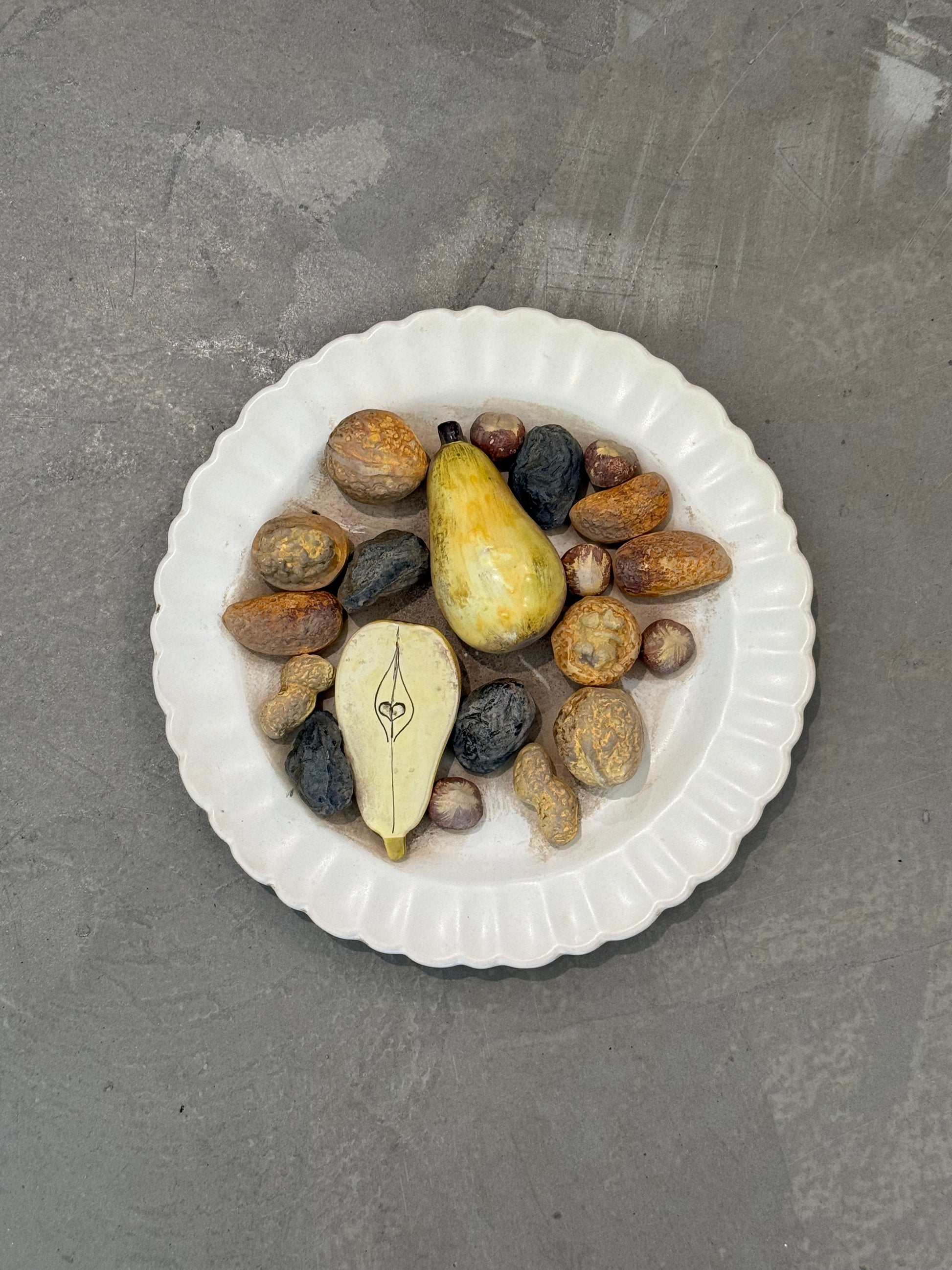 Trompe L'oeil Ceramic Plate with Fruit and Nuts, Italy