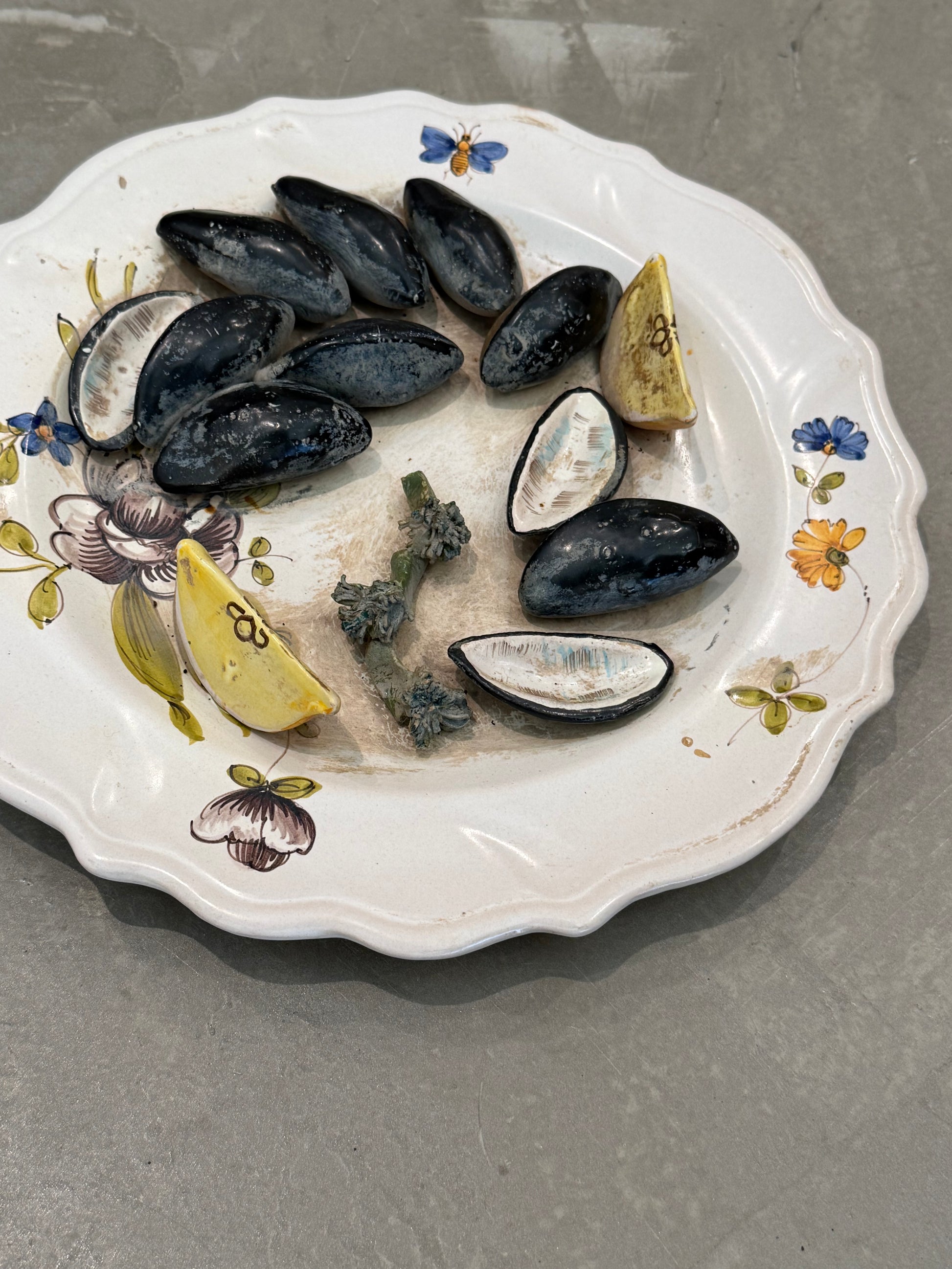 Trompe L'oeil Ceramic Plate with Mussels and Lemon, Italy