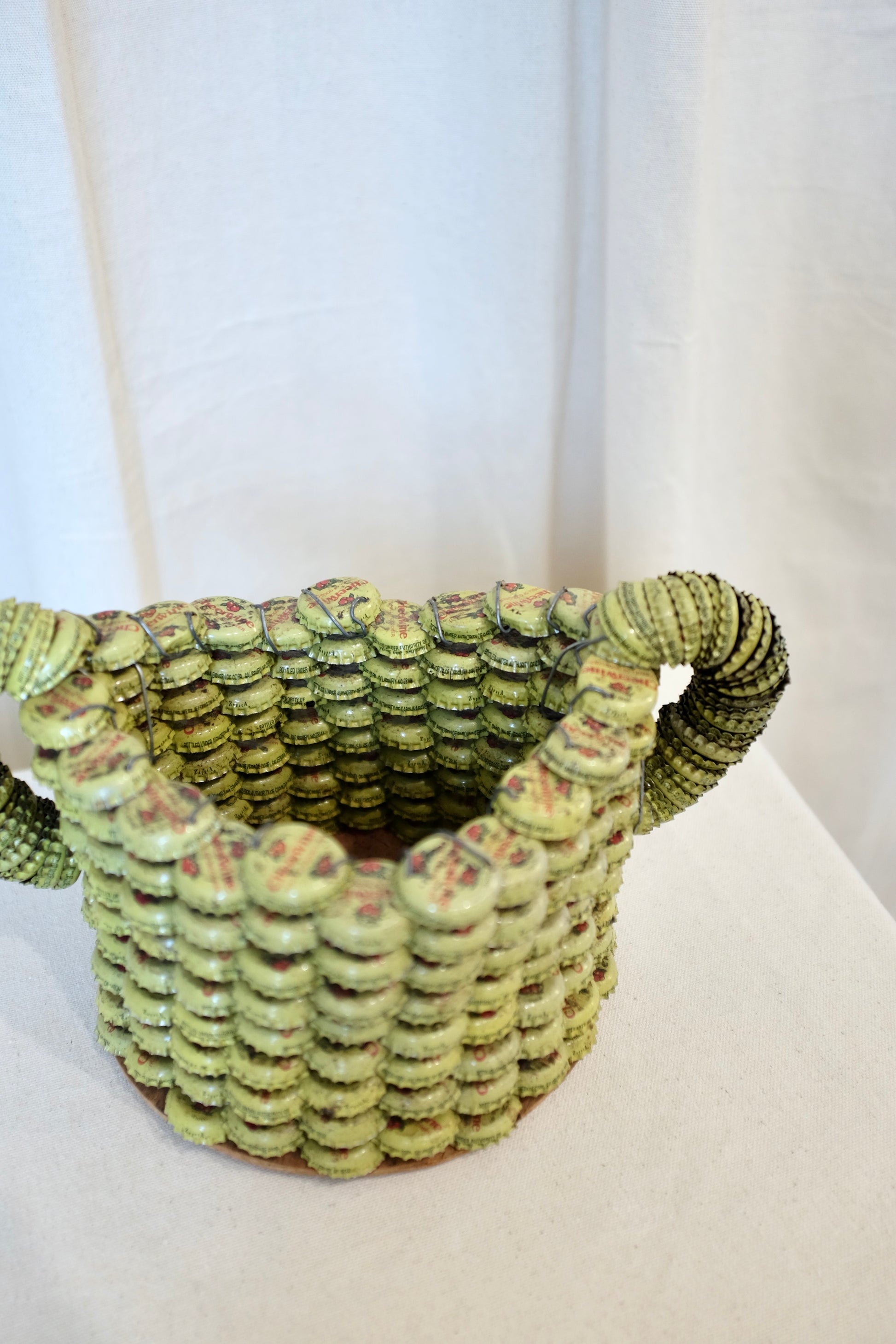 Yellow Folk Art Bottlecap Basket